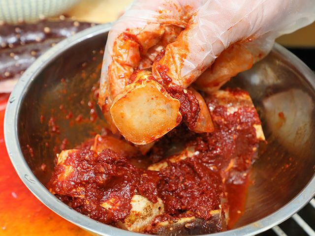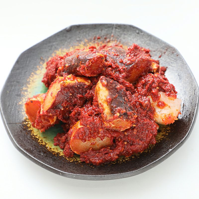 ケジャンは、カニのキムチの総称です。当店では安全性の問題からワタリガニのケジャンは作らず、本タラバガニ、佐渡紅ズワイガニむき身、ズワイガニ棒肉の3種のケジャンを作っています。カニとタレ(ヤンニョム)の作る壮絶な美味をお楽しみください