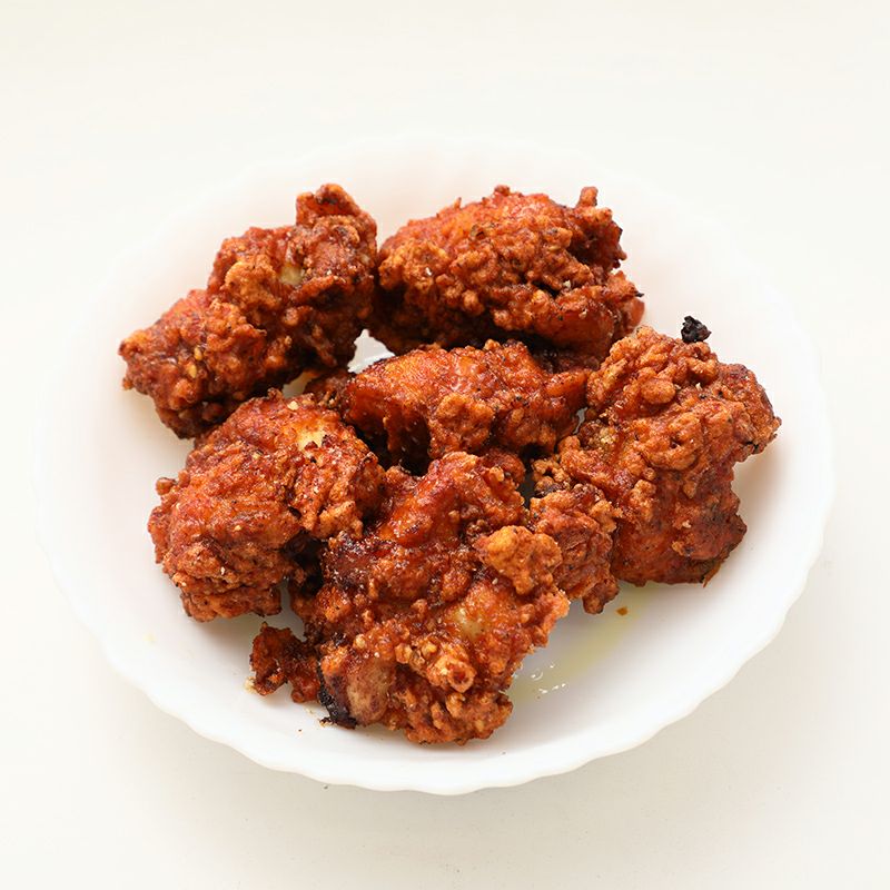 | 原材料 | 鶏肉(国産)、唐辛子、肉スープ、自家製和風だし(昆布、いりこ、しいたけ)、アミ塩から、にんにく、人参、生姜、味噌、しょうゆ、糖類(砂糖、水飴)、みりん、純米酒、りんご、レモン、食酢、オリーブオイル、くるみ、ごま、ニラ 原料原産地:国産(鶏肉) 揚げ粉(国産片栗粉) 揚げ油(落花生油) |