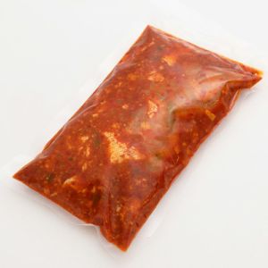 ●1パッケージ720g(3人前)と、240g個食パック(1人前)。豆腐も入った完成品です。刺激的な味わいで、味がしっかりとした無添加麻婆豆腐です。