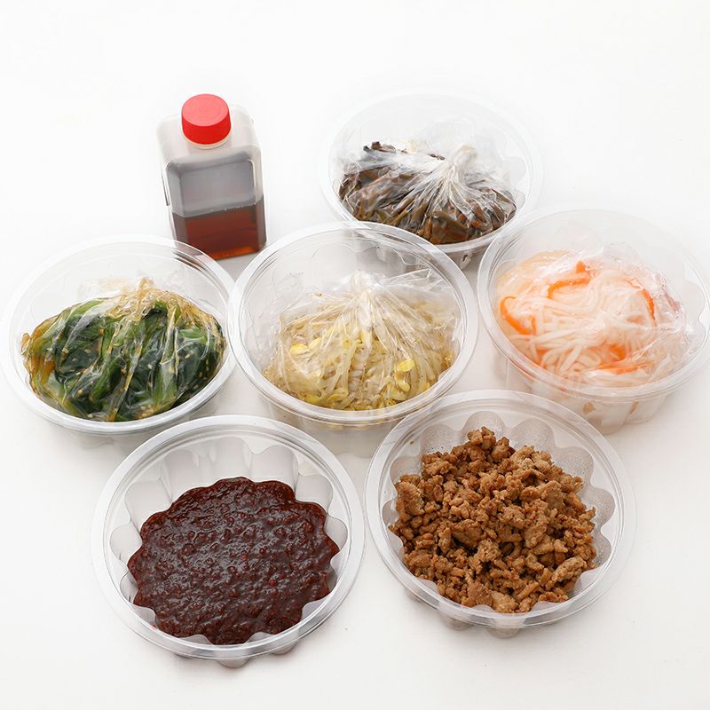 | 賞味期限 | もやしナムル:5日間 青菜ナムル:4日間 大根なます:10日間 ぜんまいナムル:8日間 鶏そぼろ:3日間 生味噌コチジャン:30日間 |
