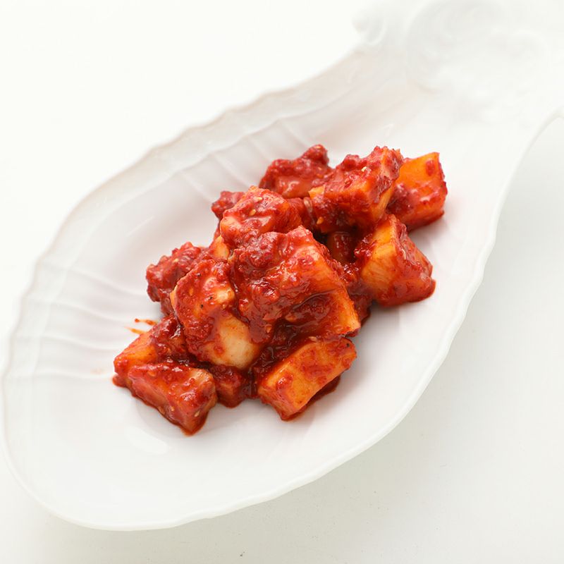 多種の野菜を、それぞれの特性に合わせて作ったヤンニョムジャンに漬けて作る、やがちゃんの野菜キムチ。食品添加物は完全無添加。それぞれの野菜の本来の美味しさが、キムチになってさらに光ります!